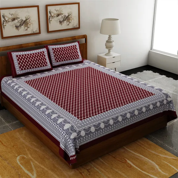 Rajasthan Traditional Double Bedsheet With 2 Pillow Cover, 100% Cotton